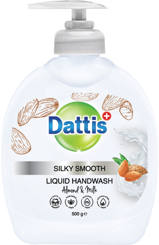 - Creamy liquid handwash contains hydrolyzed milk protein and aroma of almond and honey. It is suitable for daily use, preventing dry skin and skin soothing. It is known as Special Dattis series.